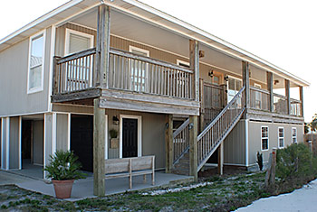 Ira and Angela Rowe’s home sustained damage from Hurricanes Erin and Opal in 1995. The following year, David Butler of Loxley Hawk, Inc. worked with his crew and LA Homebuilders to build Ira and Angela a new home. In 2004, Hurricane Ivan made landfall. The Rowe residence sustained only minor damages: the loss of some shingles and ridge cap. Three blow-out walls were blown out (as they were meant to do when hit by the storm surge), but Ira was able to locate them, bring them back to the house, and put them back in place on his own. The 22-year-old home on the beach still stands and looks as good as it did the day construction was completed!